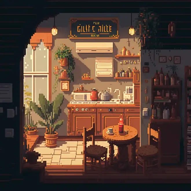 clean pixel art, house inside of a tree, style of metal slugclean pixel art, post apocalyptic city, style of metal slug 1996 --ar 3:2clean pixel art, inside of dungeon, style of metal slug 1996 --ar 3:2