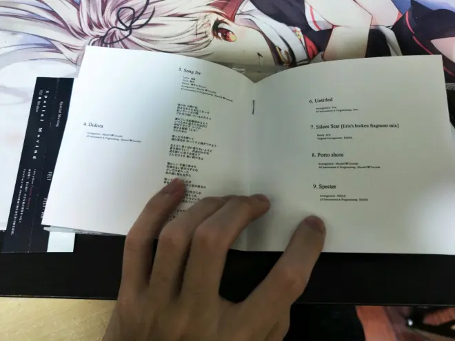 相比不少felt的碟来说,这张碟的外观设计可能有些素,但恰到好处的对比设计又极大的美化了观感。 包括碟面的黑白对比,以及刚刚提到的封面天空与人物对比。 开篇曲.Appearance Fall。有一种划破天穹的开朗感,归于沉寂后只有高空的萧瑟风声。配合封面欣赏更佳。 OUR SHIP,开篇以一个StrawberryCrisis原曲的旋律代入,随后接入舞花姐富有特色的嗓音。略快的节奏确实很带感。作为本专的主打曲也是极其合格的。 MAGIC!爵士风的v姐曲目,另有一番风味。 Doloza,我相当喜欢felt的纯音乐。这首法界之火的改编非常魔性,在主旋律不断重复时,又插入不同的旋律,钢琴,人声,节拍器。整体的将曲目变得柔和了许多,其实我觉得挺适合睡眠时听的。 Song for,温柔的大狸子你爱了吗?听这首歌就好像冬天的傍晚,吃完饭与大狸子一同出门散步,手牵手。 Porto shore,氛围感很强的曲子,听的时候就好像真的站在了深渊上的桥上,深渊对你发出了令人毛骨悚然的邀请。这个时候,你看到了桥中心的绿眼女孩...... Lost Days,作为本专第二首梦消失的改编,能听出有着第一首改编Specter的味道。整体在一个较轻快的节奏,我个人非常喜欢这首的主旋律部分,用人声演绎的非常好。