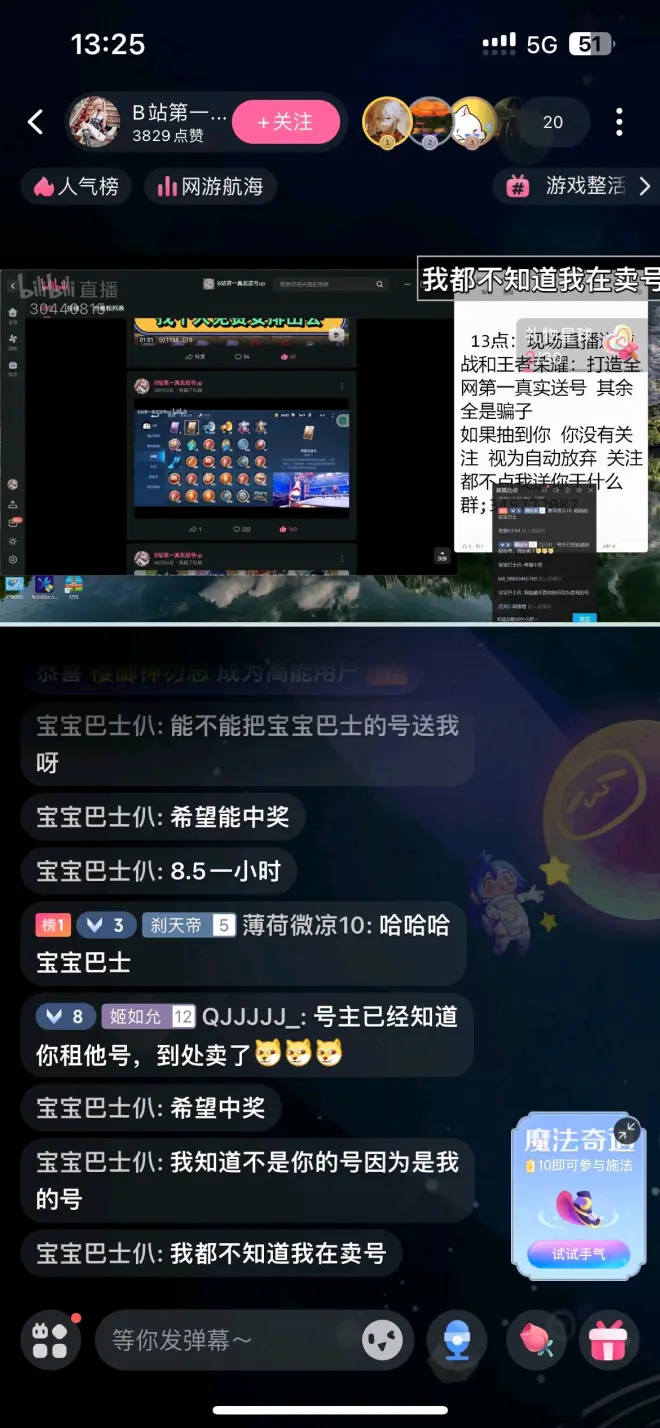 B站UID:3494380434360368 B站直播间:30440815 群号:345772087 QQ号:1311185202 B站曾用ID:刹天帝/B站第一真实送号/曦熙平台…… QQ号和群可以改,B站UID号改不了,大家见到不要上当了。 天天直播以送号为由骗礼物,直播的送号全是租号玩上租的,我们逆战群里已经有2个挂租号的被直播送号,笑死🤭。宝宝巴士这号经常和我们一起玩,他直播就送~ 8号那天卖900的号,下面是租号链接 https://www.zuhaowan.com/zuhao/6833126.html