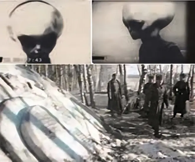 三只生物的身高都在一米二左右,皮肤呈灰色。在它们蓝绿色的皮肤下,有类似爬行动物的组织。这些生物没有毛发,但有一双黑色的大眼睛,上面覆盖着一层薄薄的保护膜。而且手指和手又长又细,四肢上长着三个手指。外星人的尸体被存放在玻璃容器中,UFO 被带到 Kapustin Yar 导弹靶场进行进一步研究。