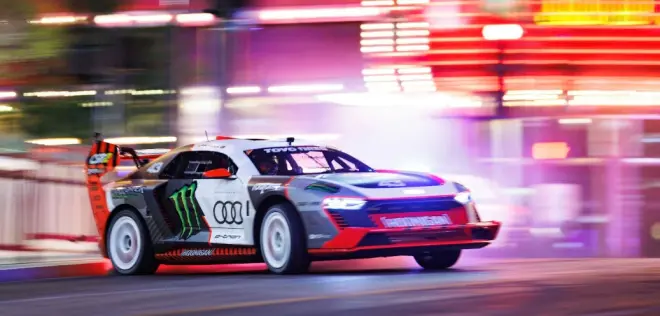 Grams还透露,奥迪RS运动版正在将赛车技术移植到家用汽车上,并将已故的Ken Block在拉斯维加斯驾驶的S1 Hoonitron作为参考数据。
