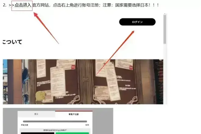 点开之后,可以直接找到官方网站的入口,再点一下右上方的登录,记住,注册地点必须选择日本!
