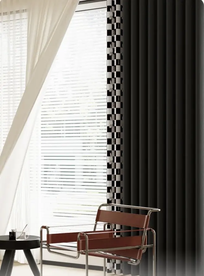 当棋盘格窗帘运用于家居装饰中时,它不仅仅是一种窗饰品,更是一种装饰元素,能够为房间提供独特的装饰效果。在客厅中,米菲联名棋盘格系列窗帘可以作为窗户的点睛之笔,将自然光线与格纹图案相结合,创造出一种独特的光影效果,调和整个空间的色彩搭配,增加活力与视觉冲击力,使客厅焕发出时尚与艺术的氛围。