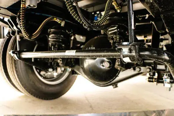 HOWO智相小轻卡的底盘用料非常扎实,设计师专门对其全新设计了承载系、行驶系,确保了在整备合规前提下的大载重能力。该车型采用盘式前桥,底板横纵梁则采用铆接+螺栓结构,板簧形式为前后3/5+2,同时还具备前后横向稳定杆、制动间隙自动调整装置。