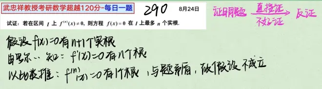 强化 — 290题 | 罗尔定义的推论 武忠祥老师每日一题