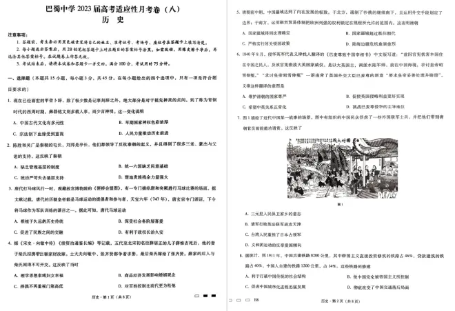 » 2023届重庆市巴蜀中学高考适应性月考卷(八)