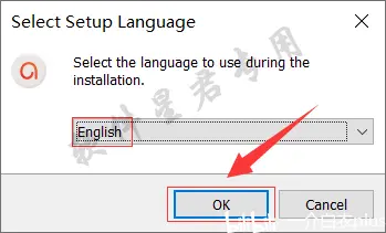 4.语言选择【English】,安装完成后自动变为中文,然后点击【OK】