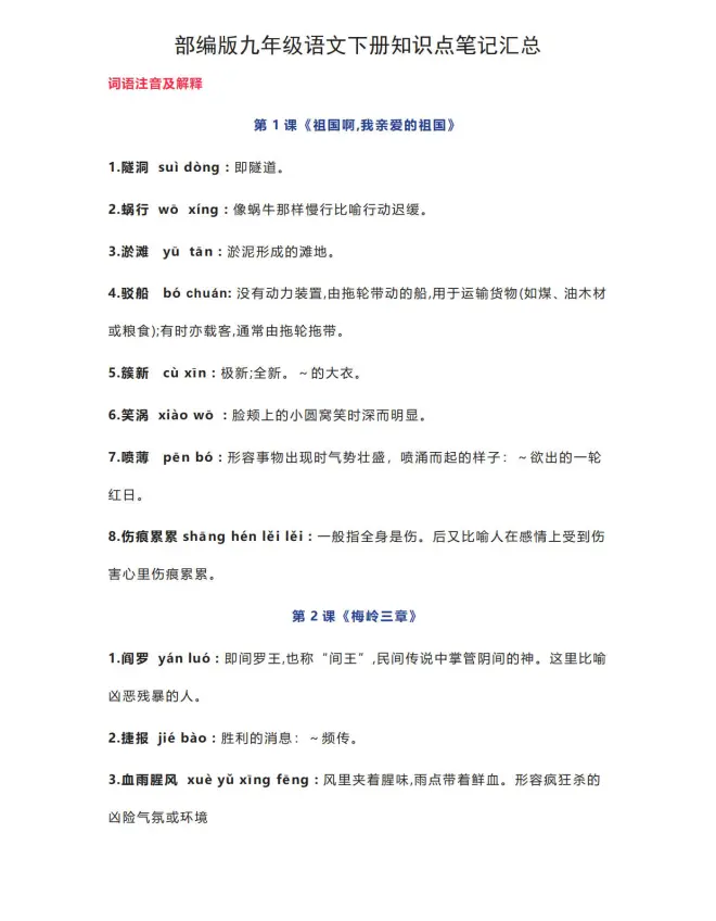 » 【中考语文提分】初中语文九年级下册语文部编版知识要点汇总