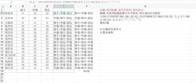 解题:先把列标题按数字升序排列,再生成对应分隔符