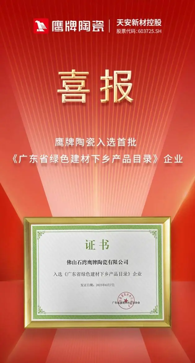 实力见证|鹰牌陶瓷入选首批《广东省绿色建材下乡产品目录》企业