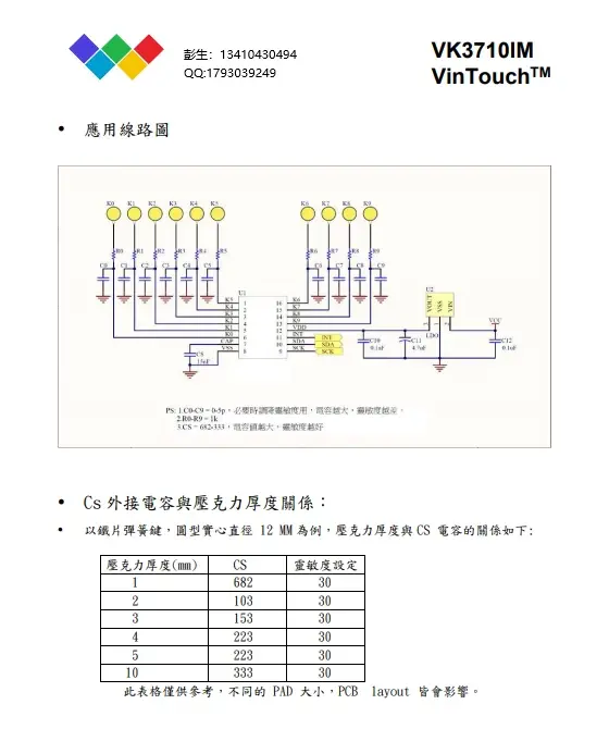 產品描述 提供10個觸摸感應按鍵及兩線式串列界面,並有中斷輸出INT腳與MCU聯繫。提供低 功耗模式,可使用於電池應用的產品。特性上對於防水和抗干擾方面有很優異的 表現!