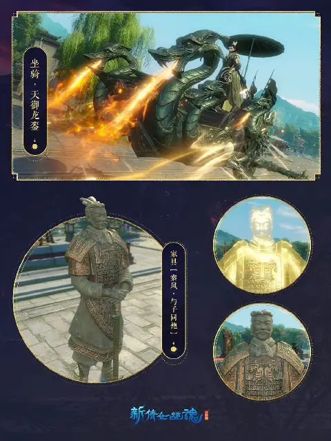 坐骑【天御龙銮】可以让你在游戏中展现出无比的力量和威严。因为它精心设计,华丽而精美,彰显了古代秦朝的奢华和尊贵。玩家们乘骑这匹坐骑时,无疑会感受到霸气的气息围绕身旁,成为游戏世界中的风云人物。