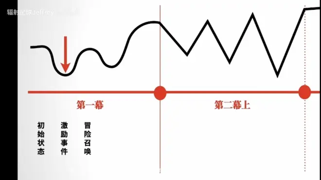 OK,第一情节点完了之后,我们正式进入第二幕,我们还是一样把它分为第二幕上和第二幕下,那么每一部分我们刚才说了三个序列,对吧?三个事件,三个序列。