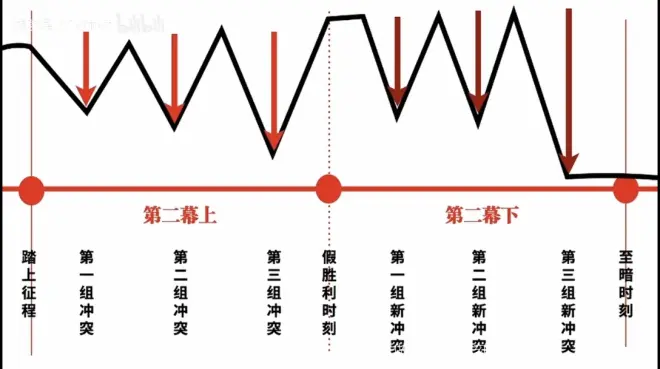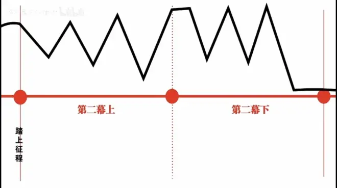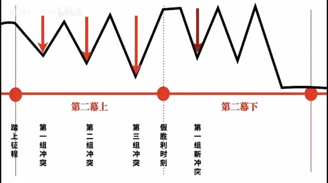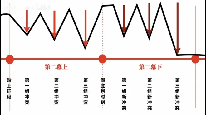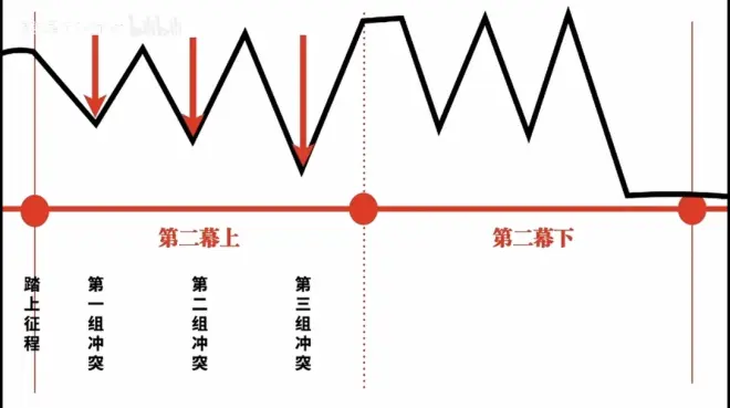 进入了第二幕的中间点,然后我们马上进入第二幕下这个模块,同样第二幕下这个模块也是三个事情,第二幕下在第二幕上的基础上冲突做到什么的升级。