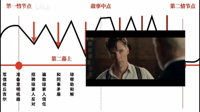 OK,那么大家理解了这个整个故事结构之后,我们下面将以一部奥斯卡最佳影片,奥斯卡最佳改编剧本奖的电影《模仿游戏》来给大家看一下这个三幕剧是如何按照这个结构去架构的。