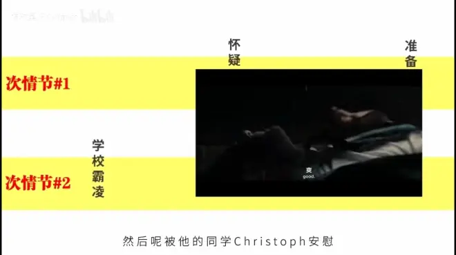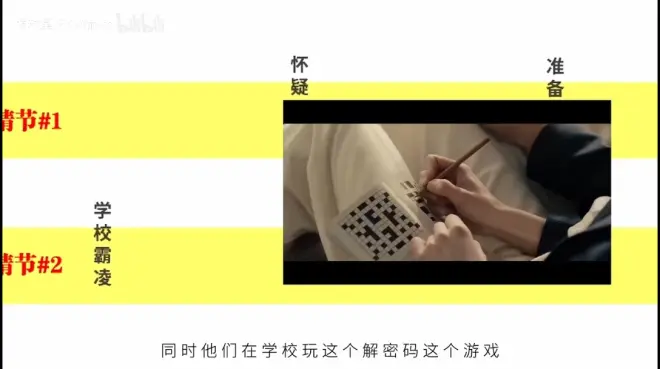 说到这个地方,你现在跟大家关系搞得不好,你是不是以前童年也不好,马上切到什么校园霸凌?然后说到这个计算机在解密的研究的时候切到什么,他和他以前喜欢的克瑞斯多夫在那里解谜题,所以次情节和主情节就有机的交织在一起了,所以大家会发现次节和主情节什么关系?