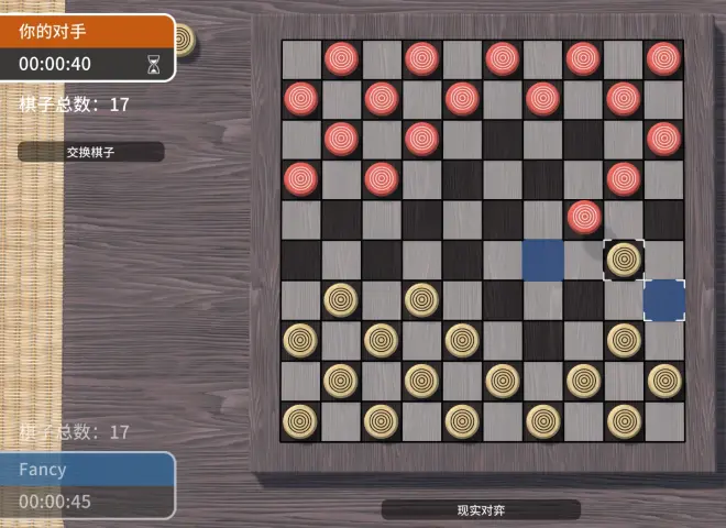 2、国际跳棋不能向后吃子,不知道采用的时哪个规则呢?国际跳棋规则比较多,最通行的应该是世界规则,可以向后吃子,王可以走任意格,是不是可以把世界规则做进去
