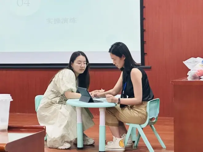 在培训期间,现场评估师通过角色扮演及一对一督导实操快速提高学员实际操作能力。这种沉浸式情境教学不仅让教师对自己的教学方式更加熟练和精进,也让现场聆听学习的老师们快速理解和掌握干预技巧。
