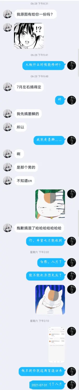 一开始是在某个漫展群里看见他无偿拍场照,正好我常约的摄影没空就交了定找他试试,当天拍的是一套Lolita说什么当天状态不好搞三个月连原图都没给我;