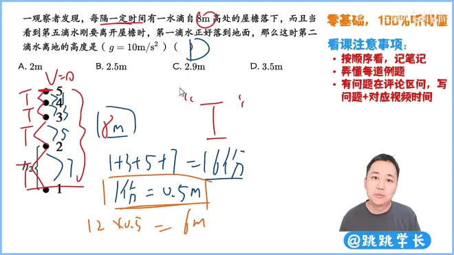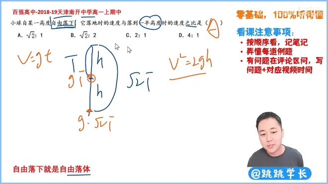 【高中物理必修1基础课】24.自由落体比例问题|彻底搞定等时间落雨滴的评论 (共