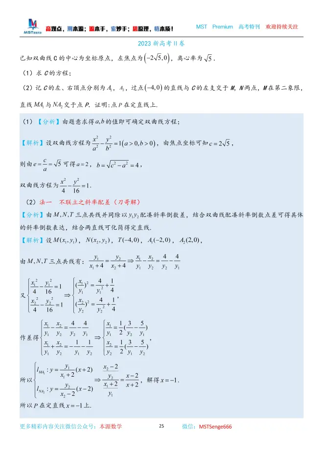 2023新高考Ⅰ卷——圆锥曲线一题多解的评论 (共