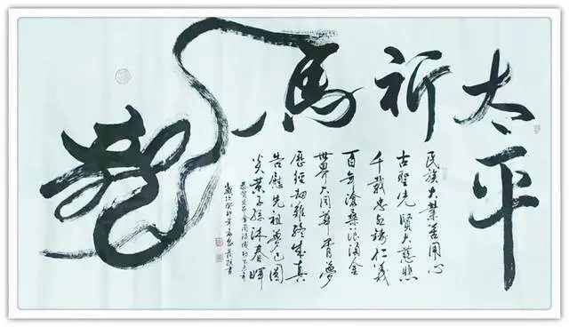 “诗文当为时而赋,书画更应世而作”。仅管有起点,正在努力中,决心踏实学习博大精深书法国粹,为中国传统文化服务社会走向世界,保卫和平、竭尽全力。不忘初心、继续前行。