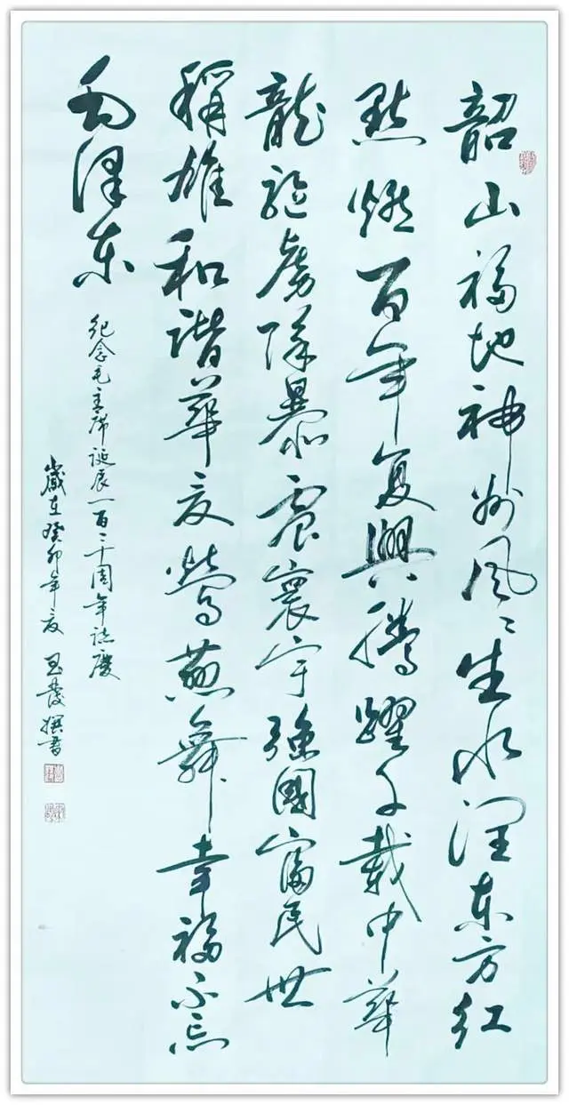 2013年纪念毛主席120周年“伟人颂中国梦”获书法一等奖;