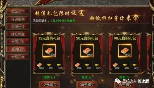 超值礼包限时放送,超低折扣等你来拿!这些直购礼包将让你的游戏之旅更加豪华,更加亮眼!