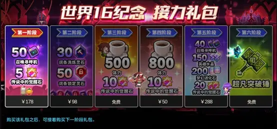 每阶段礼包限购1次,购买后即可激活下一阶段