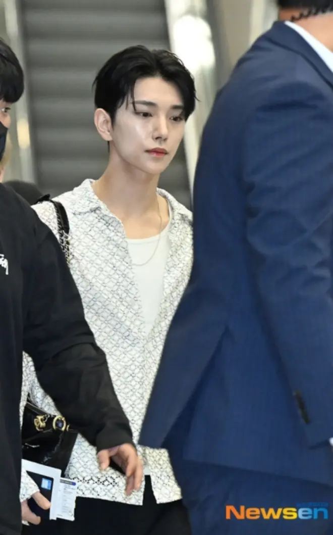 SEVENTEEN成员Joshua(洪知秀)自恋爱绯闻爆出后首次公开亮相,出境赴日。他的机场新闻图引发了韩国网民的热烈讨论。