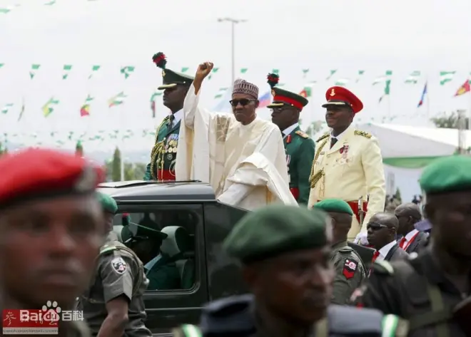 (七)2015年5月29日尼日利亚当选总统穆罕马杜·布哈里在尼首都阿布贾宣誓就职。布哈里在就职典礼上发表演讲称新政府将不遗余力的惩治腐败,重点解决极端武装组织“博科圣地”等恐怖主义组织,同时还将致力于改善电力能源紧缺,失业率居高不下和人权主义危机等一系列问题。布哈里总统表示感谢来自国际社会的美好祝愿,并表示将和全体尼日利亚人一道推动国家不断向前。在施政纲领方面布哈里表示他领导下的联邦行政机关不会侵犯立法机关和司法机关的权力,但是立法机关必须高效行使立法权和监督权,司法机关也必须首先净化自身并高效地处理包括腐败、严重经济犯罪和权力滥用在内的各种案件,只有三大机关依照宪法办事,政府才能更好地为国家服务。布哈里指出虽然宪法规定联邦、州和地方政府分工不同,但联邦政府不会对州和地方政府正在发生的事情视而不见、自缚手脚,并许诺将在各级政府中打击腐败。总统穆罕马杜·布哈里和副总统耶米·奥辛巴乔将以身作则,把薪酬减半。尼日利亚总统的年收入通常为大约1410万奈拉(约合7万美元),副总统为大约1210万奈拉(6万美元)。布哈里这一减薪举动可能让其他政府官员和议会议员感到压力,以效仿这一做法。“布哈里主义”是源于尼日利亚的政治术语,是1983年12月31日至1985年8月27日以穆罕马杜·布哈里为首的联邦军政府倡导的经济学说和政治意识形态,这种意识形态与法西斯主义、军国主义有着类似的特征。政府是一个右翼民族主义政府,推行民族主义的计划经济和限制个人自由。它的特点是激进的,但又以渐进式摆脱寄生阶层和屈从精英的统治,建立一个以民族主义者和劳动阶级处于支配地位的政治经济学。“布哈里主义”代表两种斗争方向:外部全球资本主义及其寄生虫和不爱国的国内代理人和代言人。布哈里还颁布法案来压制新闻自由,允许在没有正式指控的情况下拘留反对派长达三个月。同时也被禁止工人罢工或停工,并设立尼日利亚第一支秘密警察部队—尼日利亚国家安全局。关于布哈里经济学时西方媒体认为:“布哈里企图通过抑制进口来重新平衡公共财政,结果导致许多人失业和企业倒闭,这些损失伴随着物价上涨和人民生活水平的下降。”但持相反观点的人认为这种话说法太过武断。许多人都钦佩布哈里为人正直和反腐败立场,他的政府在拒绝接受国际货币基金组织的贷款和拒绝采纳国际货币基金组织提出的奈拉贬值的附加条件后通过采用独特的经济政策并取得进展,从而使国家保持正常运转。“布哈里主义”表现出拒绝“华盛顿共识”的强硬态度,同时认为面对金融危机通过货币贬值来改善国际收支平衡首先必须有一个条件,即每个国家的出口价格以本国货币计值。由于这种情况是不存在的,布哈里主义认为任何一个国家在对华盛顿共识的条件不存在不清楚的情况下应有可以替代和更优化的方案来解决其经济危机的问题,而不是依靠贬值使受到经济危机破坏的尼日利亚经济重新回归正轨。布哈里主义采取限制进口不必要的商品的政策,遏制偷盗石油,并通过以物易物的对销贸易提高出口。查缴非法沙坑原油所需关键的机械设备,使它的原油输出能够高于其欧佩克配额。