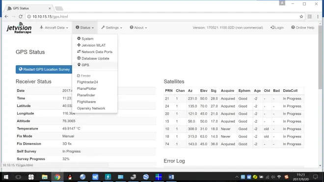 在浏览器输入Radarcape的IP地址就可以访问radarcape了。