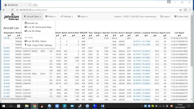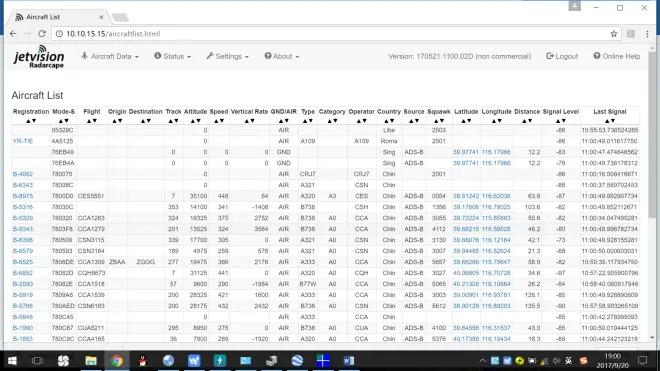Radarcape的默认显示方式是飞机列表,同时也可以输出到Openlayers Map ,同时也可以支持第三方的显示软件,如免费的ADSBScope 和收费的planeplotter,后面的章节里有介绍,我们也提供了相关的软件。