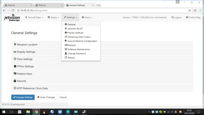 通过settings页面可以配置radarcape的各种参数。下图是general的配置界面