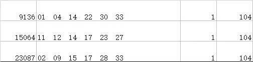 红球和值同为104的有三次: