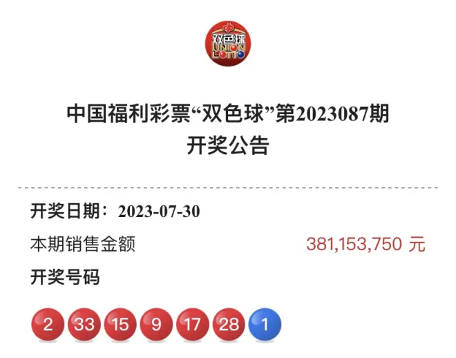 截止至第2023088期,双色球已经第3032次开奖。