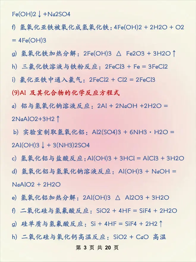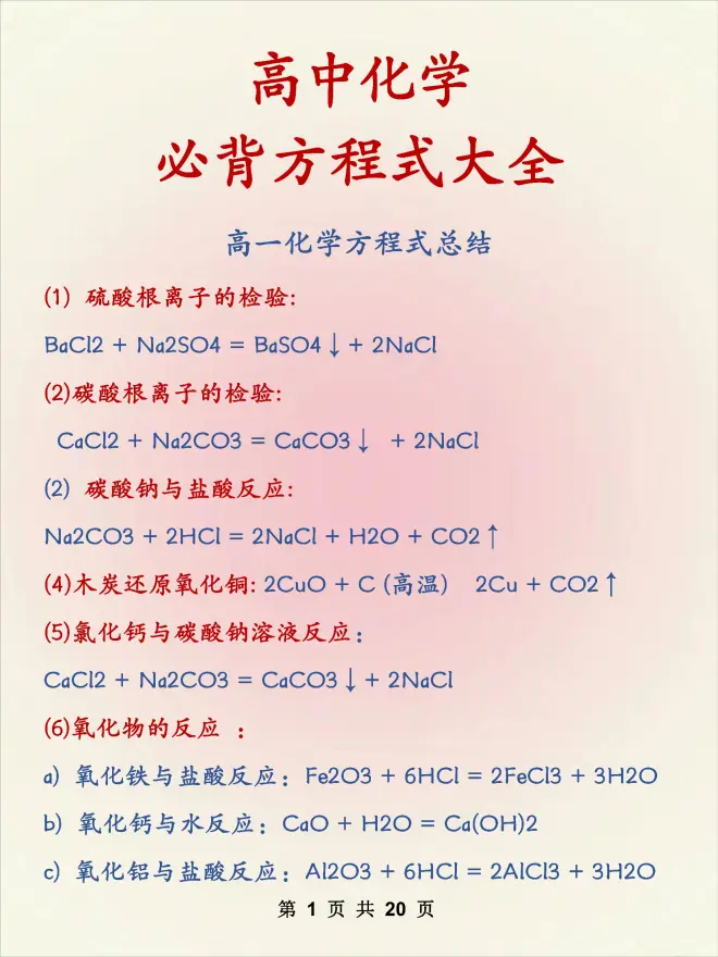 学姐给大家整理了高中化学方程式大全,课间,自习课,随便一点空闲时间都可以拿出来背一遍!打印一份可以用三年哦~