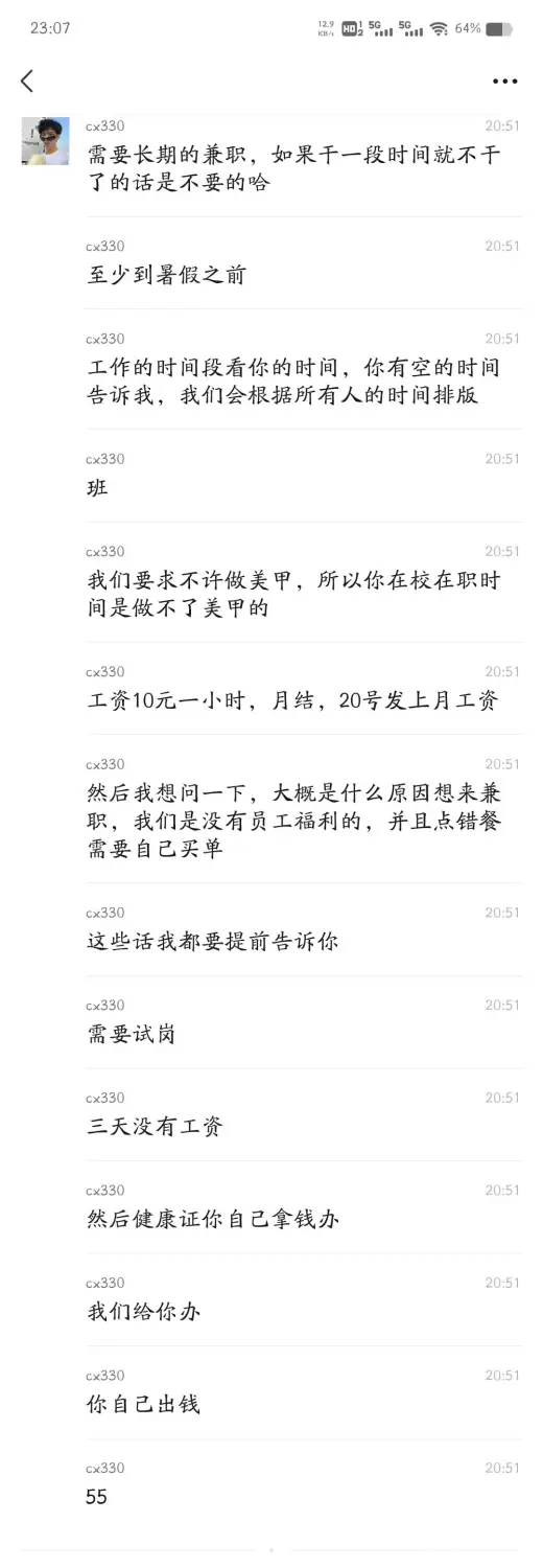 对比先前的,奶茶店兼职有一些前提条件:健康证、没有美甲……