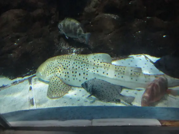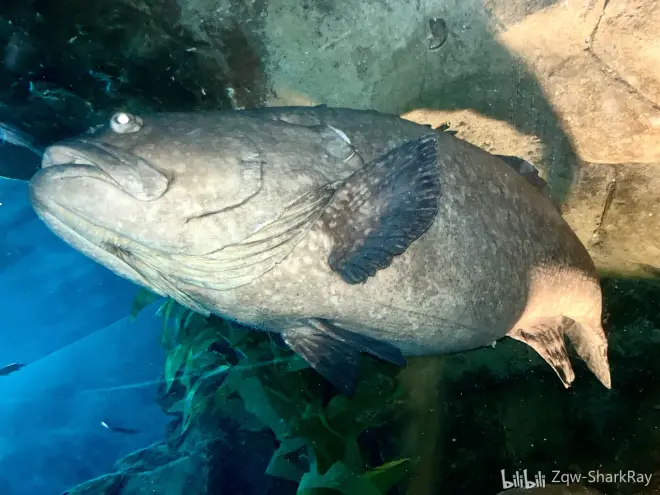 第三段隧道名为“石斑洞穴”,其中最抢眼的无疑是珊瑚礁体型最庞大的掠食性鱼类——鞍带石斑鱼,值得一提的是这里还曾经饲养过大魣(海狼),这在国内也几乎是独家展示,非常难得。