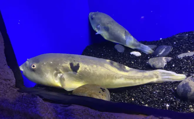 二号深海展缸长期展示的是松球鱼和狼鳗。