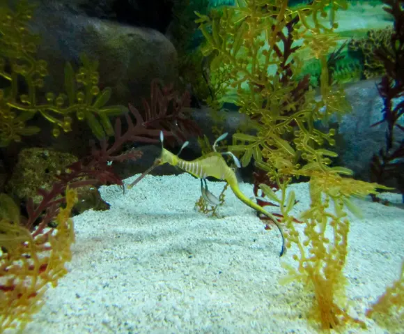 镇馆之宝草海龙的展缸用栏杆围了起来作特别保护。
