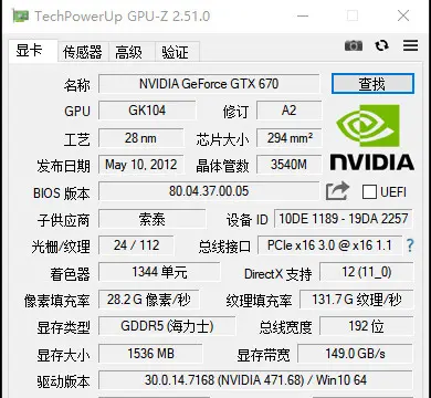 GTX670 1.5G VBIOS(在按摩店平台可以2G无问题使用,在牙膏平台不稳定所以屏蔽了512M显存)