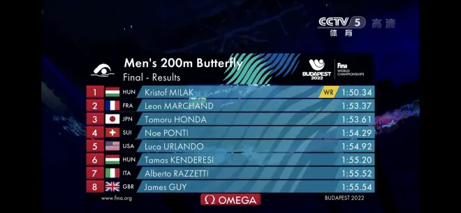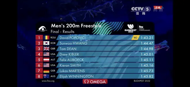2022年布达佩斯世锦赛游泳比赛结果