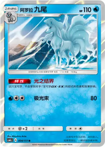 因此我们在牌组中放了四张阿罗拉六尾,一技能指路0能启动,从牌组选择任意两只宝可梦加入手牌,大部分情况下用于帮助鲤鱼王的铺场和进化成暴鲤龙,少部分情况下直接做冰九尾