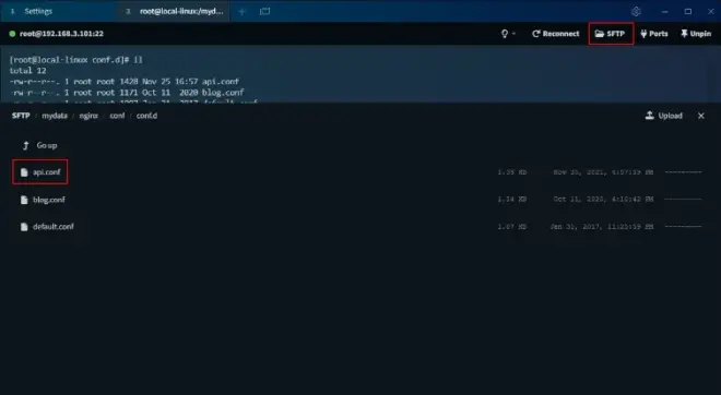 例如我现在想下载个Nginx的配置文件来改下,直接点击