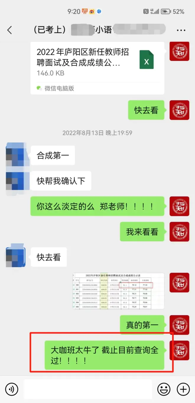 • 庐阳区初中英语赵老师,笔试第20名(倒数第三),面试第1,最终合成总第1名,成功逆袭上岸!