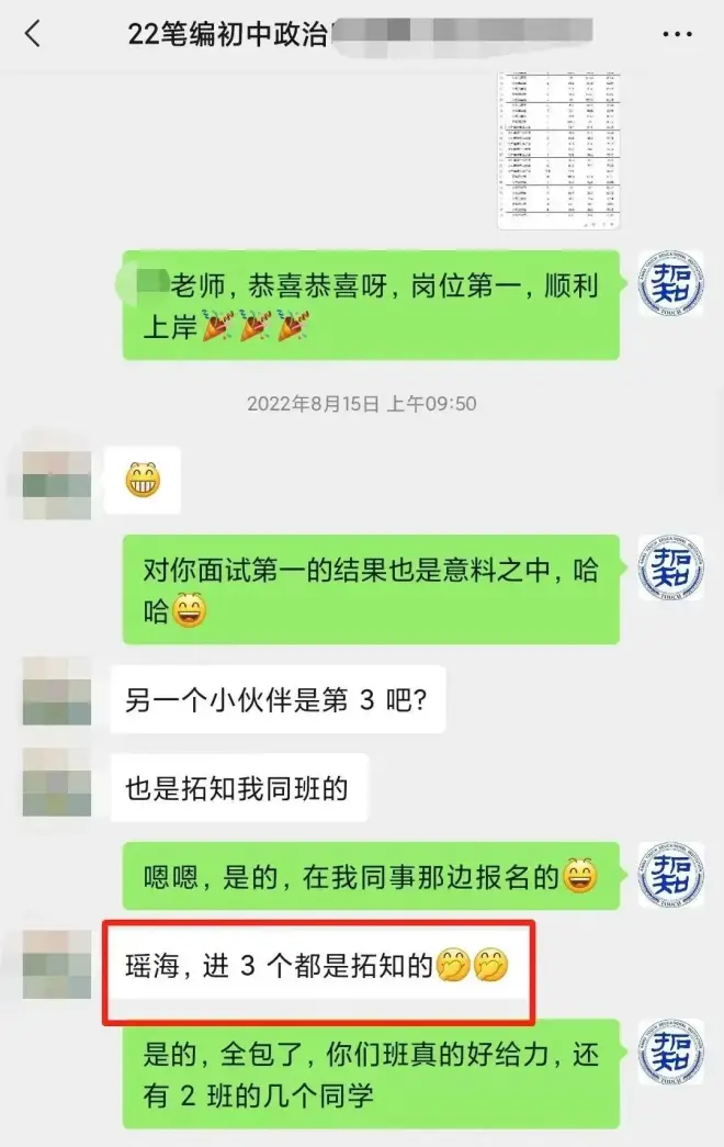 经过16载发展,积累了从教师资格证、教师考编到教师优质课赛课等丰富的教师培训经验和拥有海量的成功案例,每年经拓知培训成功考上的学员多不胜数。以2022年为例,拓知学员高分守擂和逆袭翻盘,屡创佳绩👇