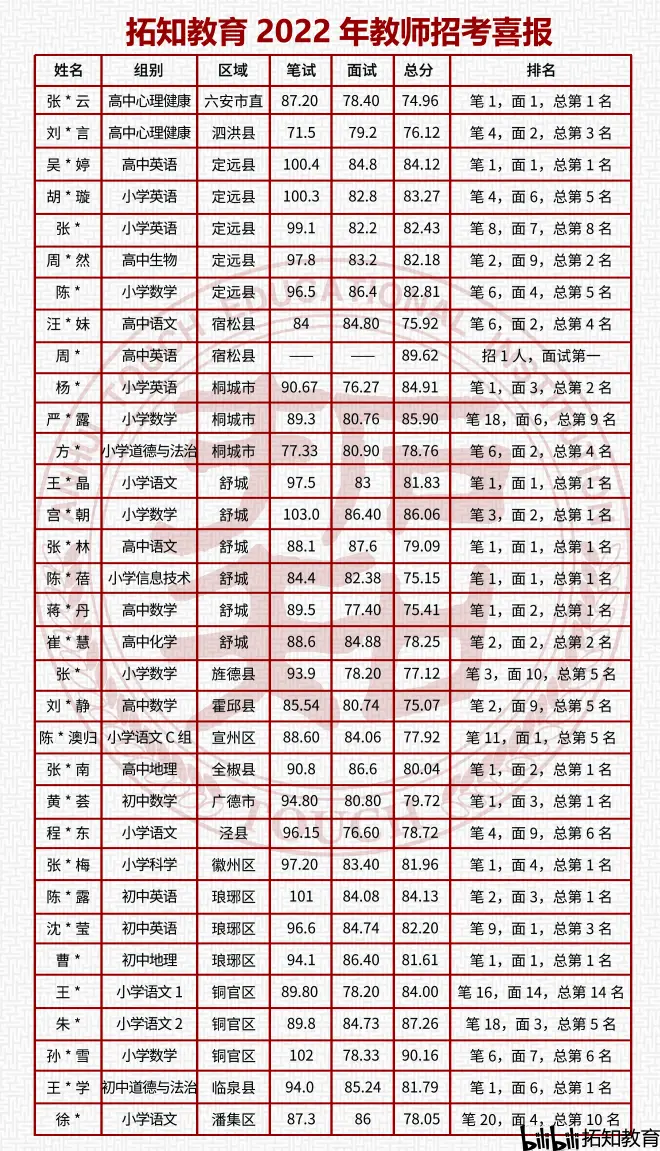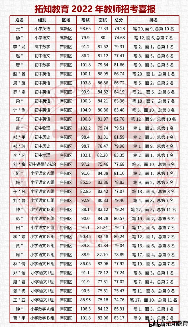 • 庐阳初中英语面试第一名、第二名均来自拓知