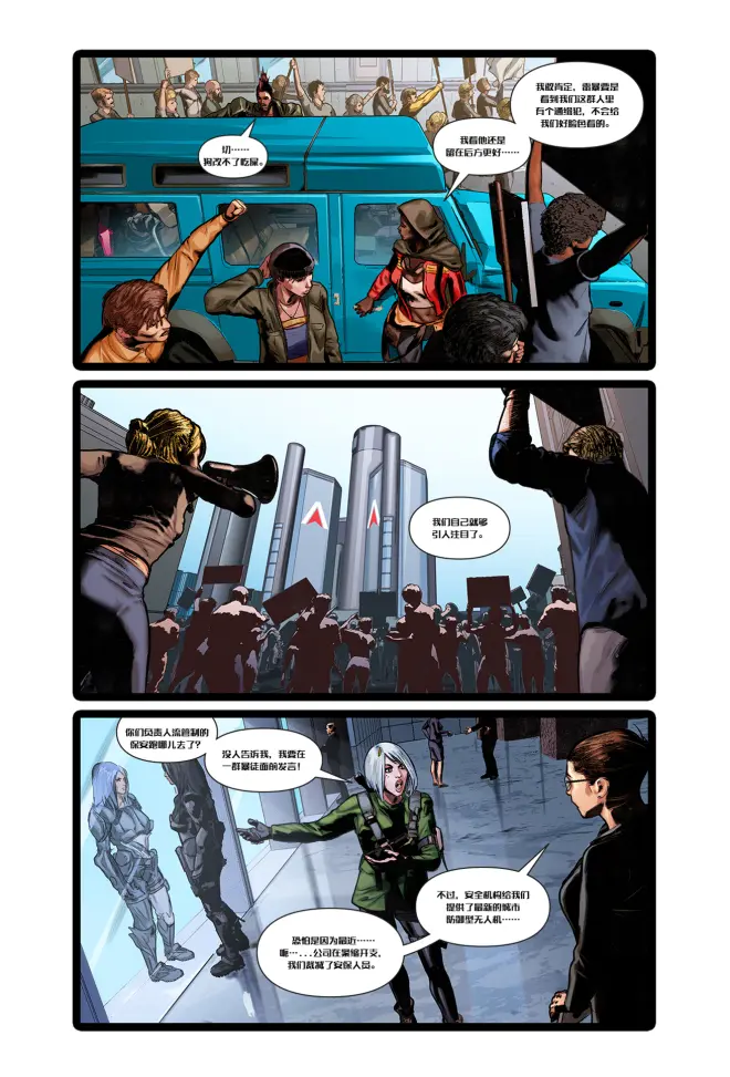 成堆的抗议人群聚集在阿特拉斯大楼楼外,演讲台上的每一句话都将是为他们精心设计的谎言...