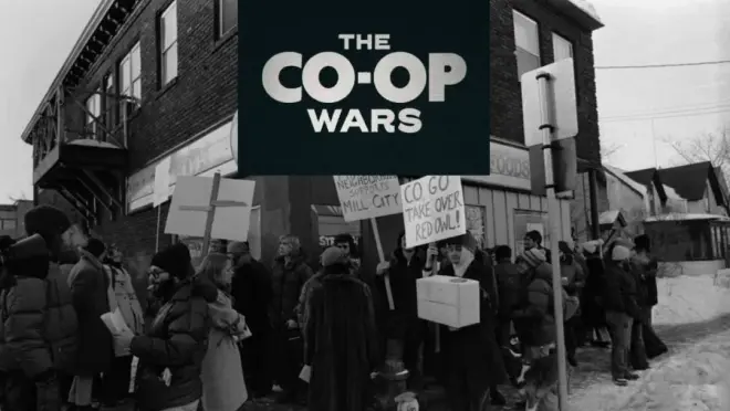 这部纪录片——《合作社战争》(The Co-op Wars,导演:Deacon Warner,2021,57分钟)——讲述了一件发生在1970年代的真实事件:一些年轻人在明尼苏达创立了食物合作社对抗资本主义,但他们对合作社的未来有不同的看法,这些分歧最终导致激烈斗争。一派认为合作社应该为大众服务,系统性反抗种族主义资本主义;另一派主张有机健康食物和小规模社区营造(无论是否他们的本意,这一派的理念近年发展成昂贵的有机食品店)。